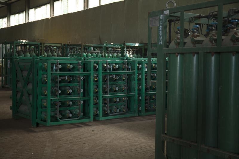 公司選用更專業的生產設備和輔助設備有:充裝排七套、30立方二氧化碳儲槽1臺、100立方二氧化碳儲槽1臺,50立方液氧儲槽1臺,30立方液氬儲槽1臺,30立方液氮儲槽1臺,60立方天然氣儲槽2臺,低溫壓縮泵6臺,高壓二氧化碳充裝線兩條,干冰生產包裝流水線一條,氫氣充裝排兩排(14頭);配有氫氣管束車8輛,LNG運輸車3輛,平板運輸車8輛。